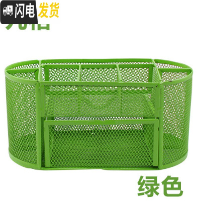 三维工匠3个铁艺多功能金属彩色笔筒塑料便签座文具时尚创意金属网状笔筒学生文具办公桌收纳盒子桌面摆 九格多功能笔筒(绿色)