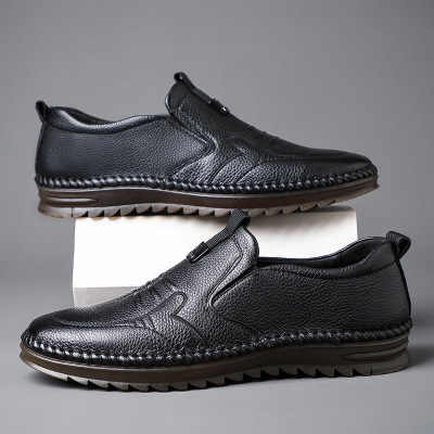 春季新款真皮透气套脚皮鞋男士百搭休闲时尚懒人一脚蹬厚底休闲鞋