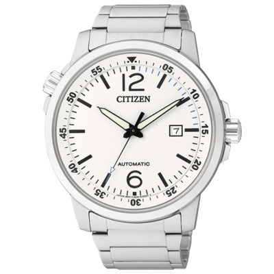 西铁城(CITIZEN)手表 时尚自动机械白盘钢带商务时尚休闲男表NH8260-68AB
