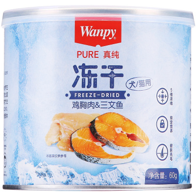 wanpy顽皮冻干猫狗零食营养增肥发腮60g鸡胸肉三文鱼口味训练罐头