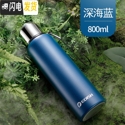 三维工匠316不锈钢保温杯800大容量便携车载男士女户外旅行水杯子 深海蓝