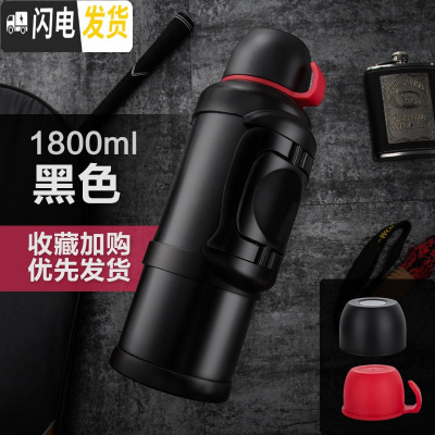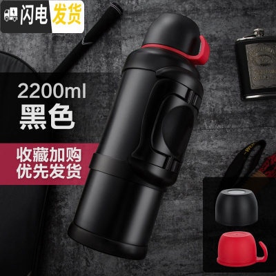 三维工匠保温水壶大容量不锈钢保温杯男暖瓶户外旅行便携超大号2000 黑色1800