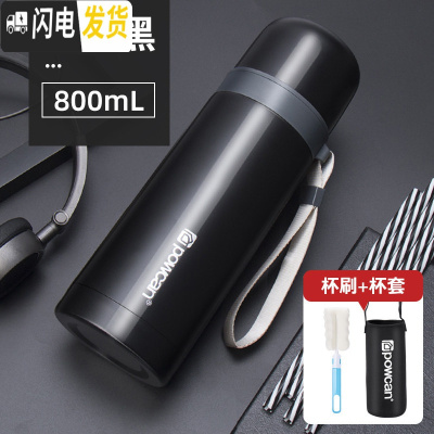 三维工匠保康保温杯大容量男户外便携女士304不锈钢水杯壶800-1000杯子 绅士黑800+杯套杯刷