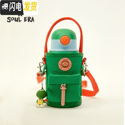 三维工匠 精灵洞洞大容量儿童保温杯带吸管男女幼儿园水杯学生水壶 口袋款-艾龙绿(550)