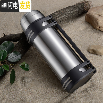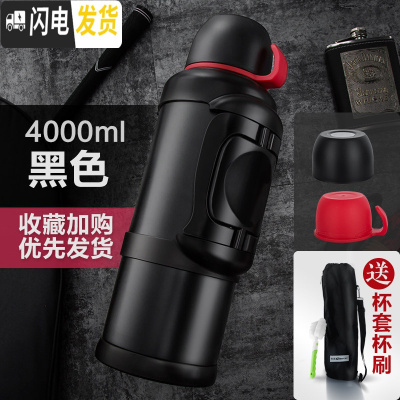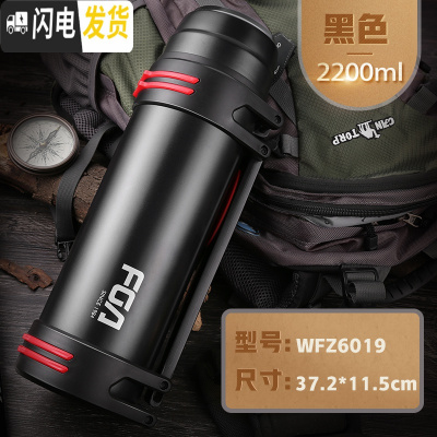 三维工匠保温水壶大容量不锈钢保温杯男暖瓶户外旅行便携超大号2000 黑色2.2