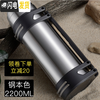 三维工匠保温杯大容量便携保温水壶杯子男旅行保温壶大容量户外车载23 钢色2200