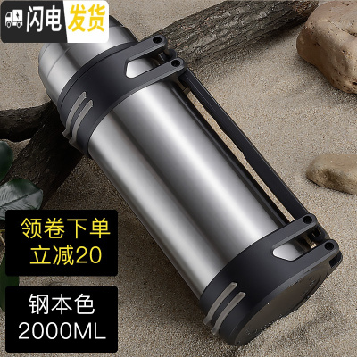 三维工匠保温杯大容量便携保温水壶杯子男旅行保温壶大容量户外车载23 钢色2000