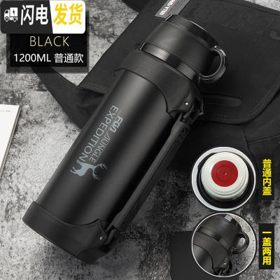 三维工匠保温水壶大容量不锈钢保温杯男暖瓶户外旅行便携超大号2000 黑色1200