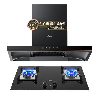 美的(Midea)烟灶套装 21立方智能侧吸式挥手自清洗油烟机+5.0KW灶油烟机灶具套餐JP50+Q218B天然气