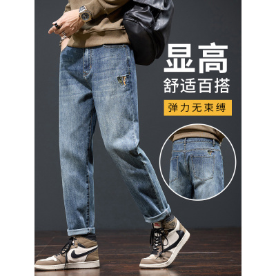 YANXU牛仔裤男士2023弹力显高修身潮牌休闲长裤小脚百搭锥形裤子