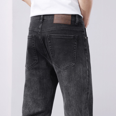 中国刺绣品质牛仔裤男春秋款韩版修身长裤弹力加绒舒适直筒裤男士