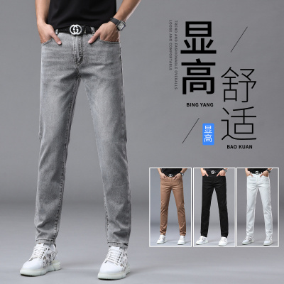 春夏季薄款轻奢欧货高端牛仔裤男士潮牌修身小直筒脚弹力百搭