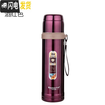 三维工匠304不锈钢真空保温杯男大容量水壶女学生户外便携大号运动瓶750 酒红色750赠杯套杯刷