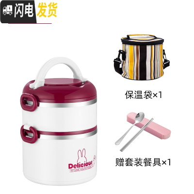 三维工匠304不锈钢多层保温饭盒上班族学生分隔型便当餐盒便携日式可爱1人 2层酒红色[送餐具+保温袋]