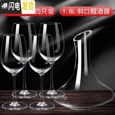 三维工匠红酒杯套装家用6只装水晶醒酒器欧式大号葡萄酒高脚杯玻璃酒具2支 412四只装+斜口醒酒器