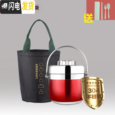 三维工匠上班族304不锈钢保温饭盒提锅3层便当带饭盒超长便携桶大容量学生 1.5提锅+酒红方包+餐具