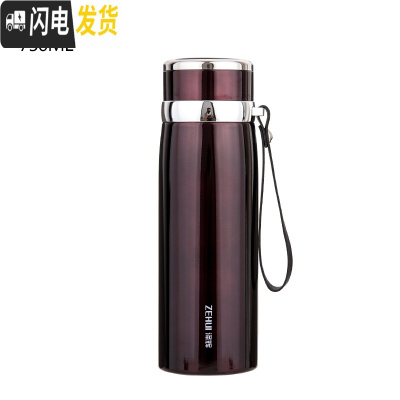 三维工匠大容量保温杯男女户外旅行1000便携学生水杯带滤网商务茶杯刻字 亮圈酒红色750送杯套杯刷杯垫