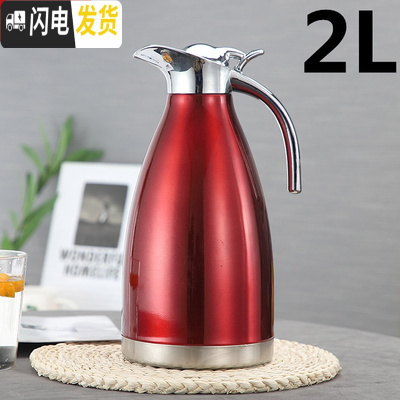 三维工匠凉水杯 冷水壶 304不锈钢 家用保温真空壶商用饭店餐厅茶壶可高温 酒红色2.0保温24小时304内胆保温壶