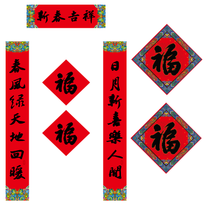 福人福地对联福字套装高清定制版手工书法集字对联春联创意福字套装个性订制家居装饰