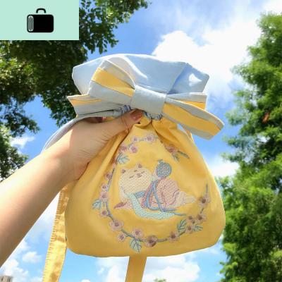 原野趣原创设计复古风汉服包袋斜挎手提可爱刺绣喝酒猫咪温柔女包NEW LAKE 喝酒猫咪女手包