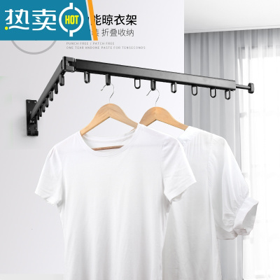 敬平阳台晾衣架折叠卫生间壁挂式室外隐藏伸缩室内窗户隐形收缩晾衣杆 迷你款折叠晾衣架-黑色