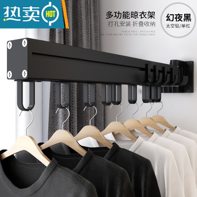 敬平阳台晾衣架折叠卫生间壁挂式室外隐藏伸缩室内窗户隐形收缩晾衣杆 黑色1杆折叠晾衣架(8钩)