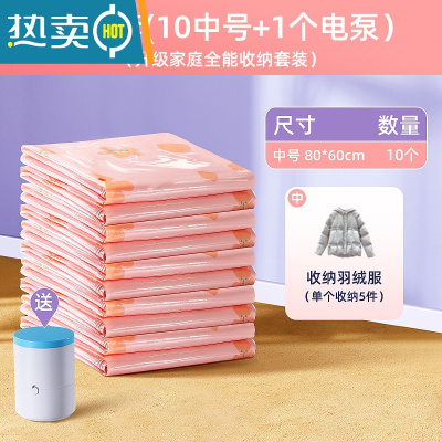 敬平真空压缩衣服收纳袋被子抽气家用棉被行李箱专用特大袋 11件套[10个中号]+电泵1个 [绝不漏气!365天内袋压缩袋