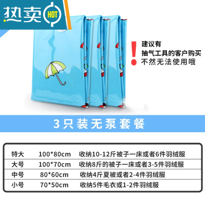 敬平特大号真空压缩袋棉被褥子衣物家用整理密封袋电泵抽气收纳袋器 3只装无泵 中号(80*60cm)