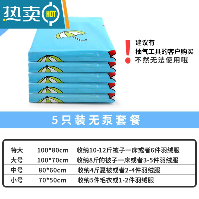 敬平特大号真空压缩袋棉被褥子衣物家用整理密封袋电泵抽气收纳袋器 5只装无泵 小号(70*50cm)