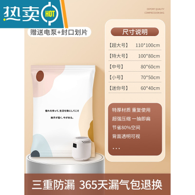 敬平真空被子压缩袋家用整理衣服专用抽气收纳袋特大号小号加厚密封袋 6件套(5特大)+电泵 大号(100*80cm)