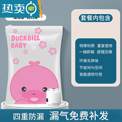 敬平真空粉色压缩袋收纳袋衣服被子家用抽气电泵棉被羽绒服行李收纳袋 粉白鸭4个{送电泵} 中号(80*60cm)