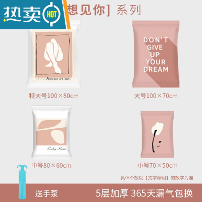 敬平抽空气真空压缩袋收纳袋大号装棉被子衣物整理袋被褥收纳器袋子 想见你4个装+手泵 特大号[100*80]
