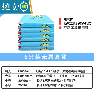 敬平特大号真空压缩袋棉被褥子衣物家用整理密封袋电泵抽气收纳袋器 6只装无泵 大号(100*80cm)