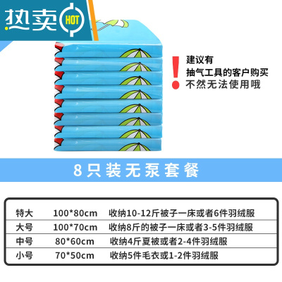 敬平特大号真空压缩袋棉被褥子衣物家用整理密封袋电泵抽气收纳袋器 8只装无泵 大号(100*70cm)