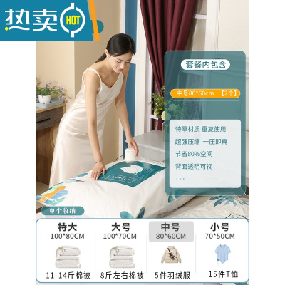 敬平真空压缩收纳袋抽空气棉被子衣服家用羽绒衣物专用袋子整理收缩 2只中号[80*60cm] 套装+电泵压缩袋