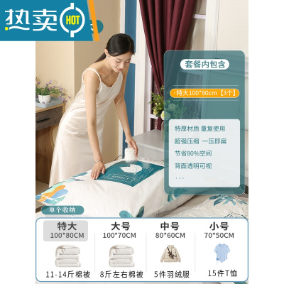 敬平真空压缩收纳袋抽空气棉被子衣服家用羽绒衣物专用袋子整理收缩 3只特大[100*80cm] 套装+电泵压缩袋