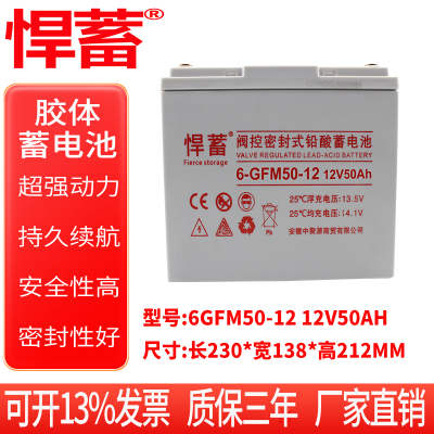 12V50AH太阳能专用蓄电池UPS光伏直流屏EPS应急照明基站6GFM50-12