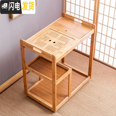 三维工匠移动茶车家用茶台带轮茶水柜茶盘具套装自动电磁炉简约茶桌泡茶车 竹-茶车+盖板茶具