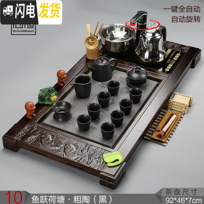 三维工匠家用全自动上水电磁炉茶盘实木茶海台茶具套装整套陶瓷喝茶简约 10鱼跃多福黑陶自动