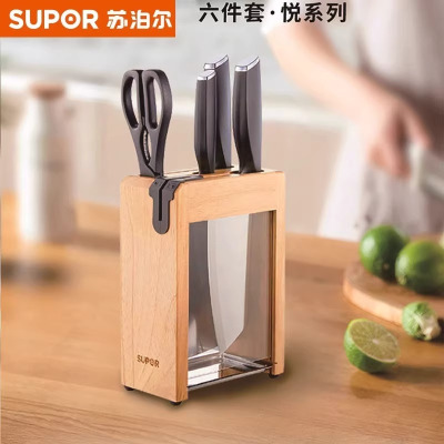 苏泊尔(SUPOR)刀具套装家用厨房切片菜刀水果刀剪刀不锈钢尖锋六件套 TK2122Q