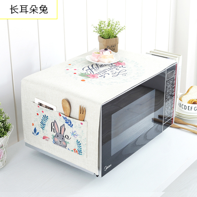 家用微波炉罩保护防尘罩防水盖布布艺烤箱防尘布冰箱防灰尘遮 长耳朵兔 小双开门冰箱、洗衣机通用(150*60cm)升级防水