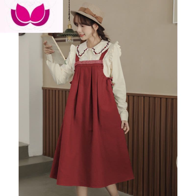七斓奶绿色衬衫背带套装连衣裙女秋季2023新款减龄森系少女裙子套