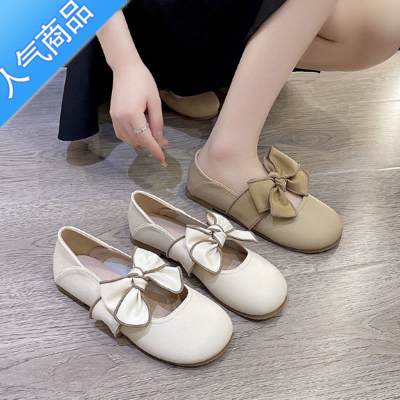 SUNTEK两穿豆豆鞋女2023新款夏季软底蝴蝶结一脚蹬乐福鞋平底仙女单鞋子
