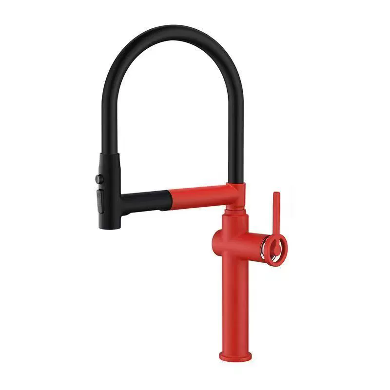 汉德斯科全铜厨房水龙头洗菜盆抽拉式水槽冷热洗碗磁吸万向旋转多出水龙头 中国红-磁吸飞雨