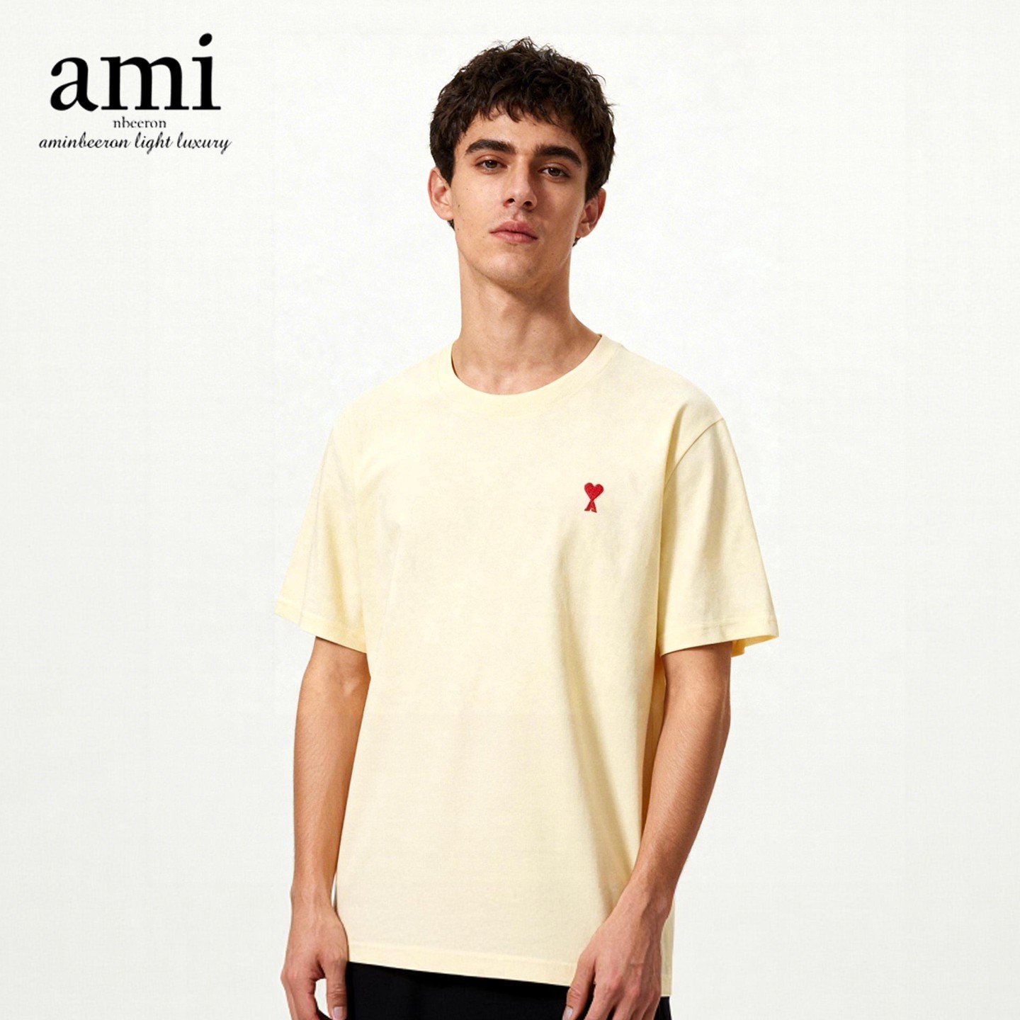 ami nbeeron纯棉短袖t恤重磅新疆棉圆领打底衫男女百搭休闲轻奢T S 杏色