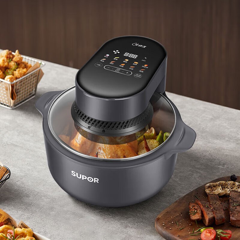苏泊尔(SUPOR)空气炸锅 家用煎烤机 轻音运作蒸气嫩炸 双旋钮控温调时 12道建议菜单 全金属内腔无异味易清洁