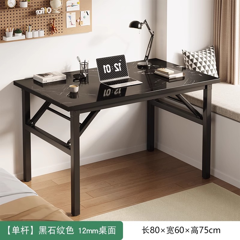 折叠桌卧室电脑桌家用长方形书桌简易办公桌学习宿舍出租屋小桌子 加粗钢管一体免安装黑石纹色80*60*75cm