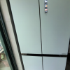 外观内在的晶透白净月光白,十字门上下开合很有吸附力,上门配置肉眼可见的各司其职的置物空间,功效期待能如出一辙吧。下门划分出六个储物小隔间,风冷无霜的冷藏空间还有净化空间功效。还没开电放置食物,期待能好好用上好多年这么新颖美好的美的冰箱