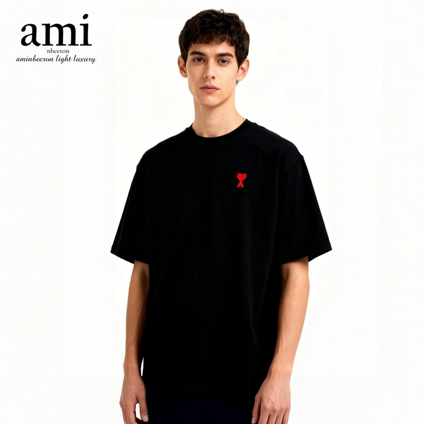 ami nbeeron纯棉短袖t恤重磅新疆棉圆领打底衫男女百搭休闲轻奢T S 黑色
