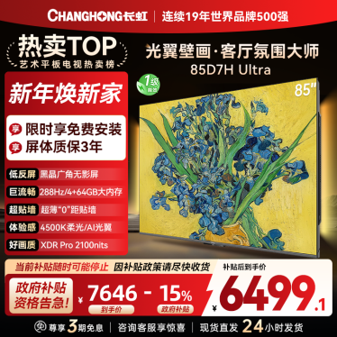 长虹电视85D7H Ultra 85英寸双低反光翼壁画 黑晶广角无影屏 全维控光MiniLED 新品首发政府补贴以旧换新